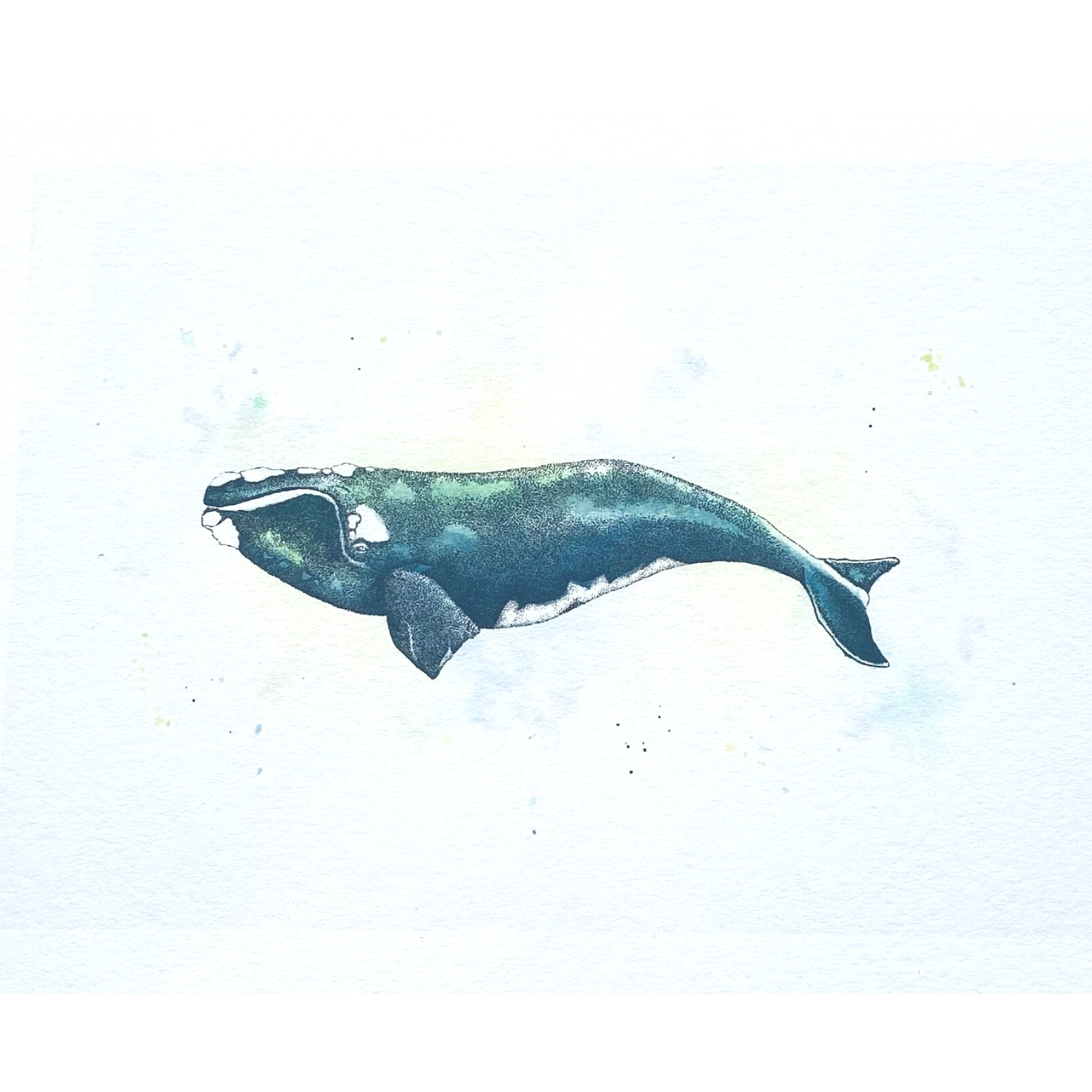 A Blue Whale watercolour and ink print of my original art. This print of a Atlantic Whale swimming in the sea is a fantastic image of this beautiful creatures majestic grace.