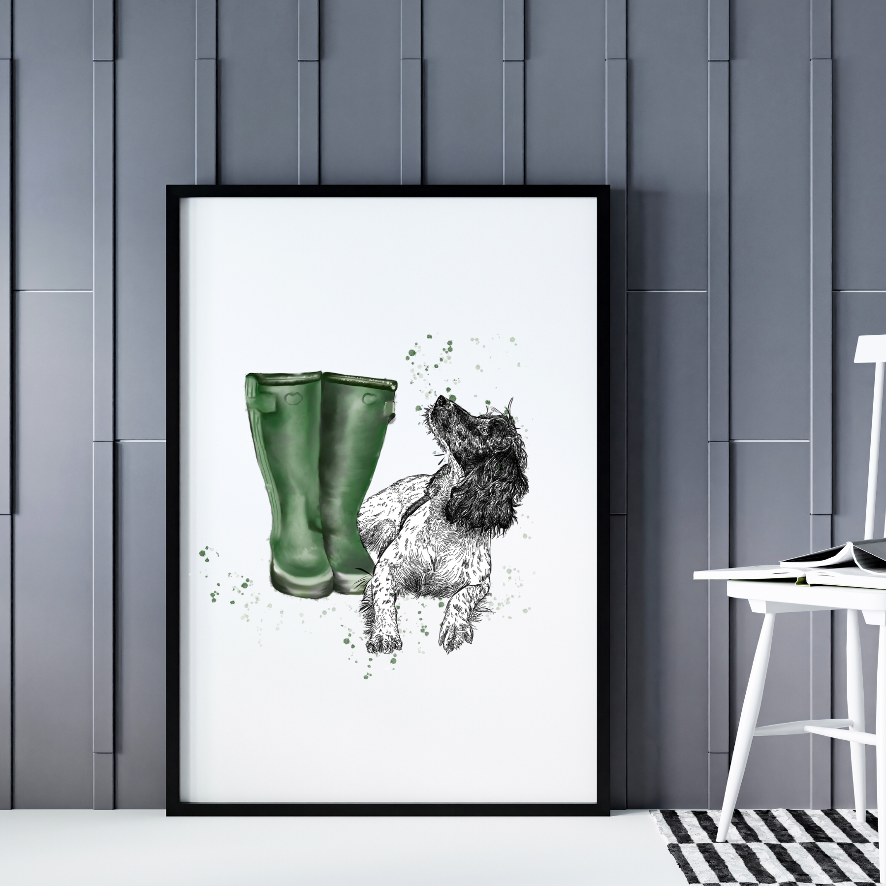 Make your walls come alive with our Constant Companion Dog Dot Art Print! Featuring a charming spaniel sitting beside a pair of wellies, looking up lovingly at its unseen master, this hand-designed artwork brings a unique and vibrant energy to any home.