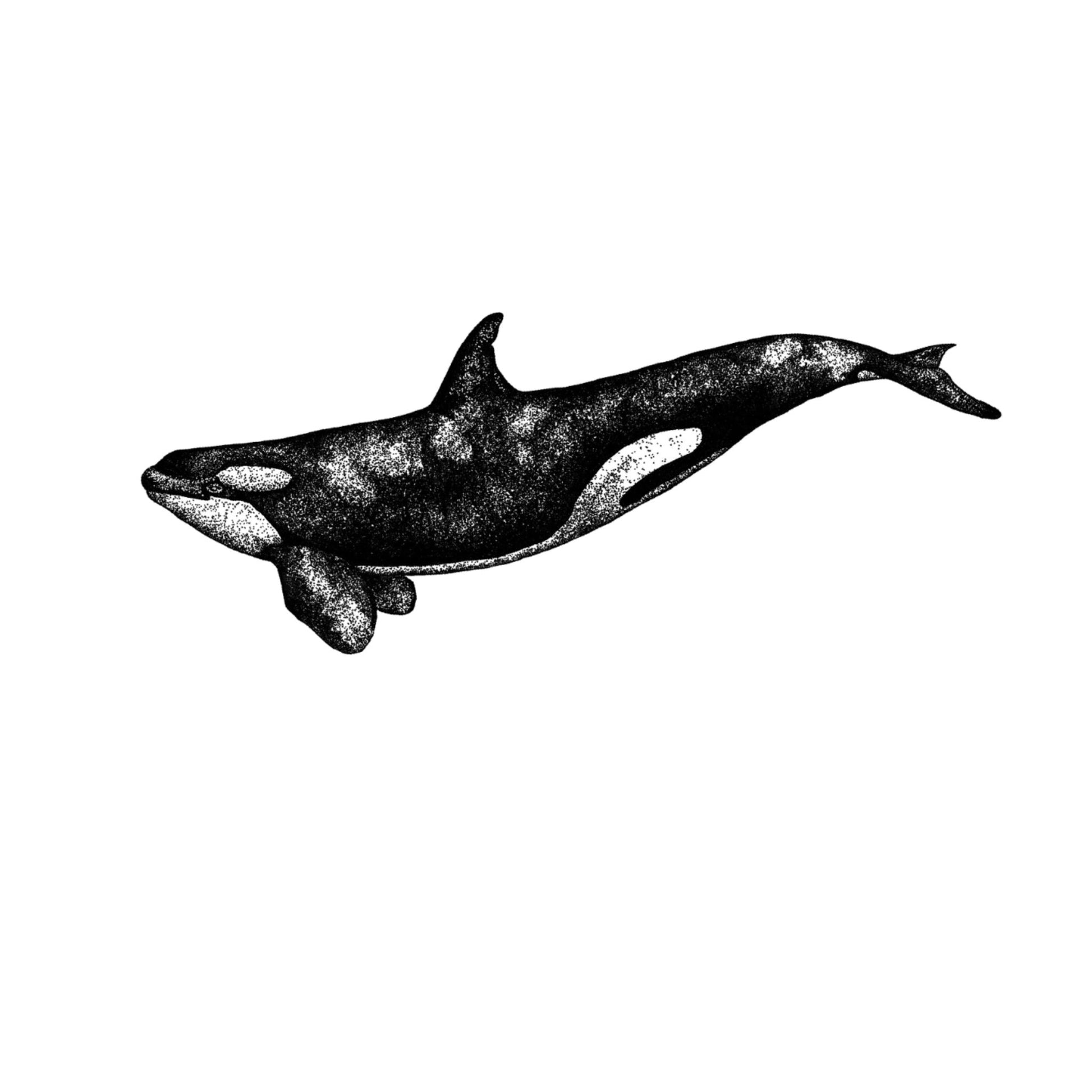 A scientific illustration of a orca whale print of my original art.