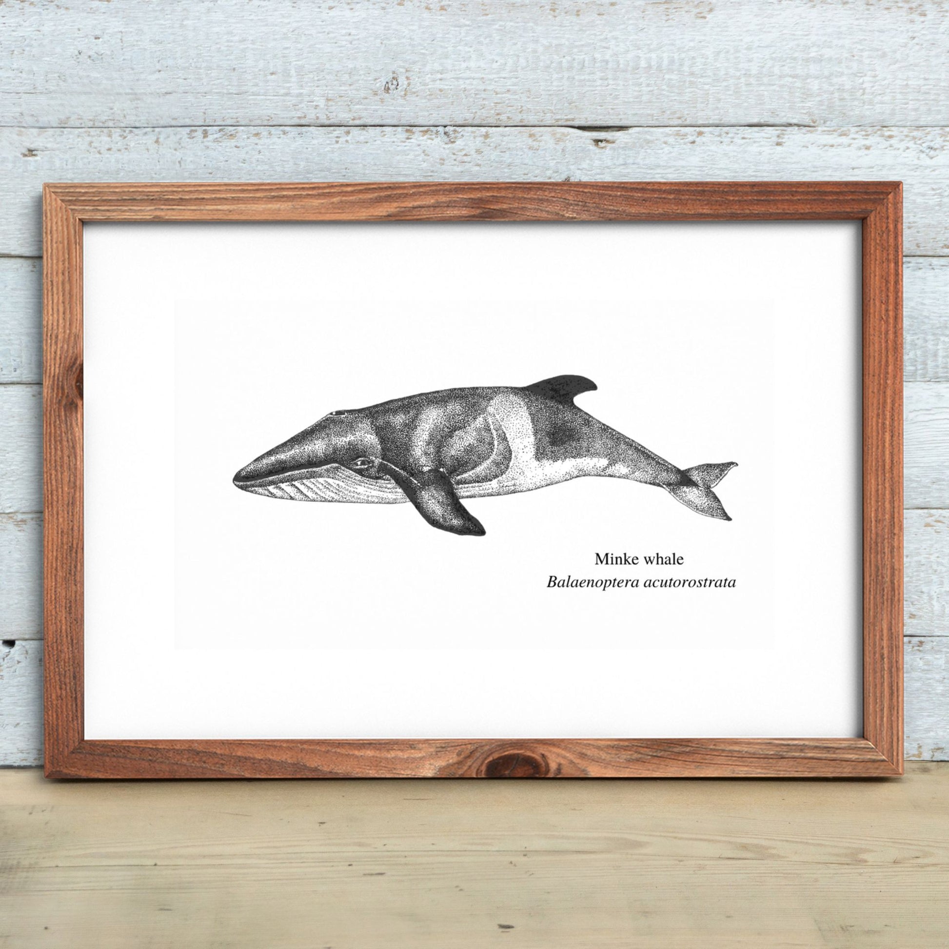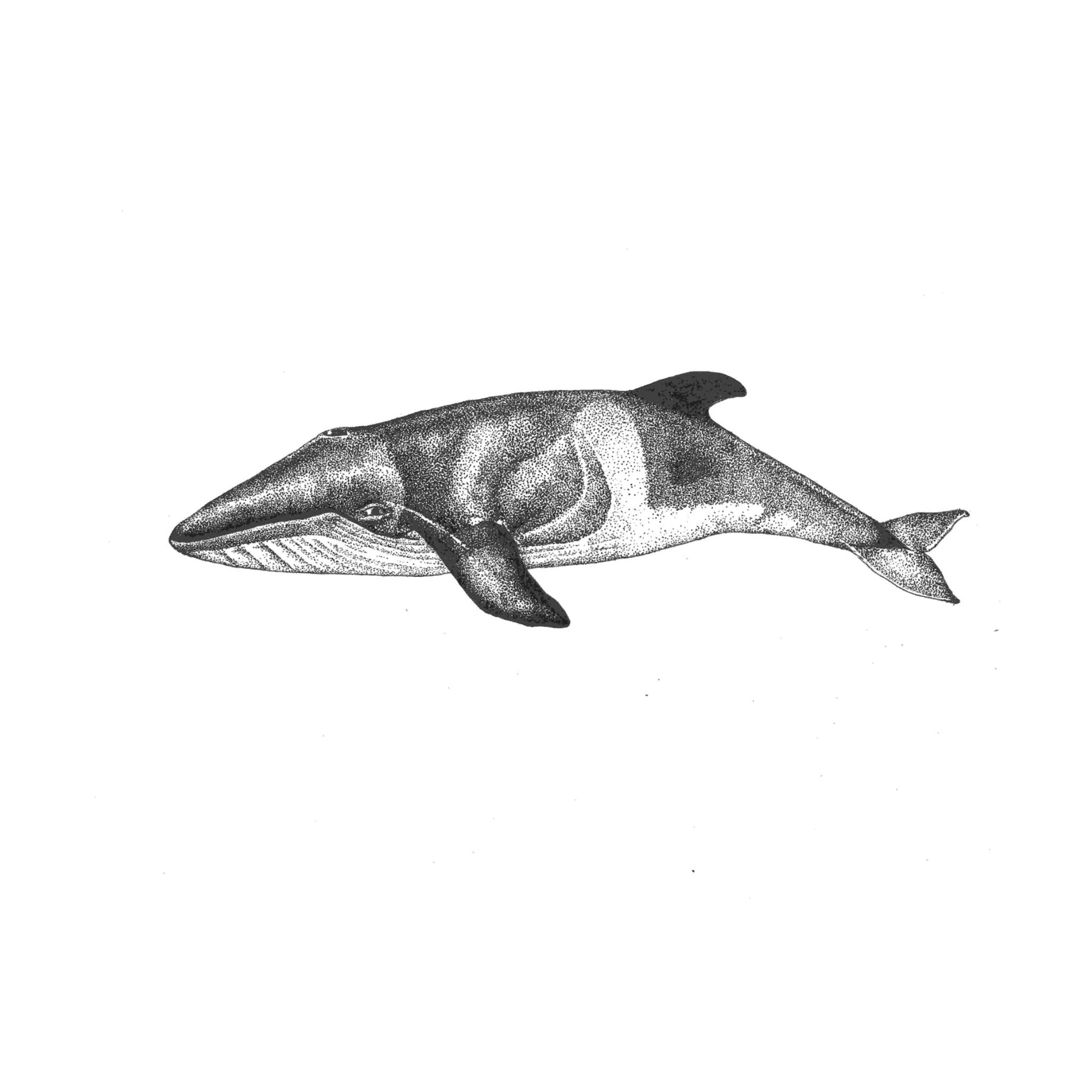 A scientific illustration of a minke whale print of my original art.