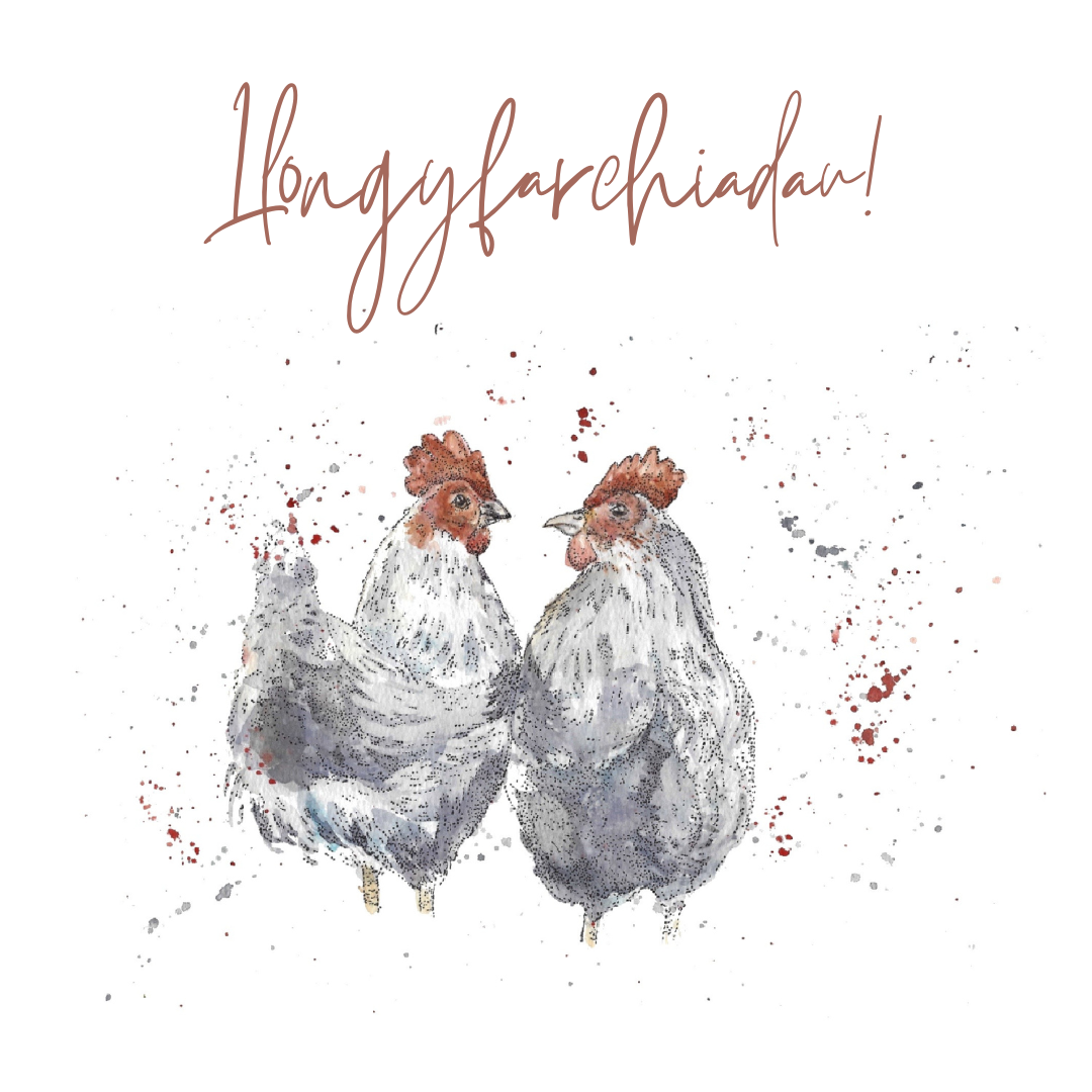 Llongyfarchiadau, Congratulations Chickens Welsh Card
