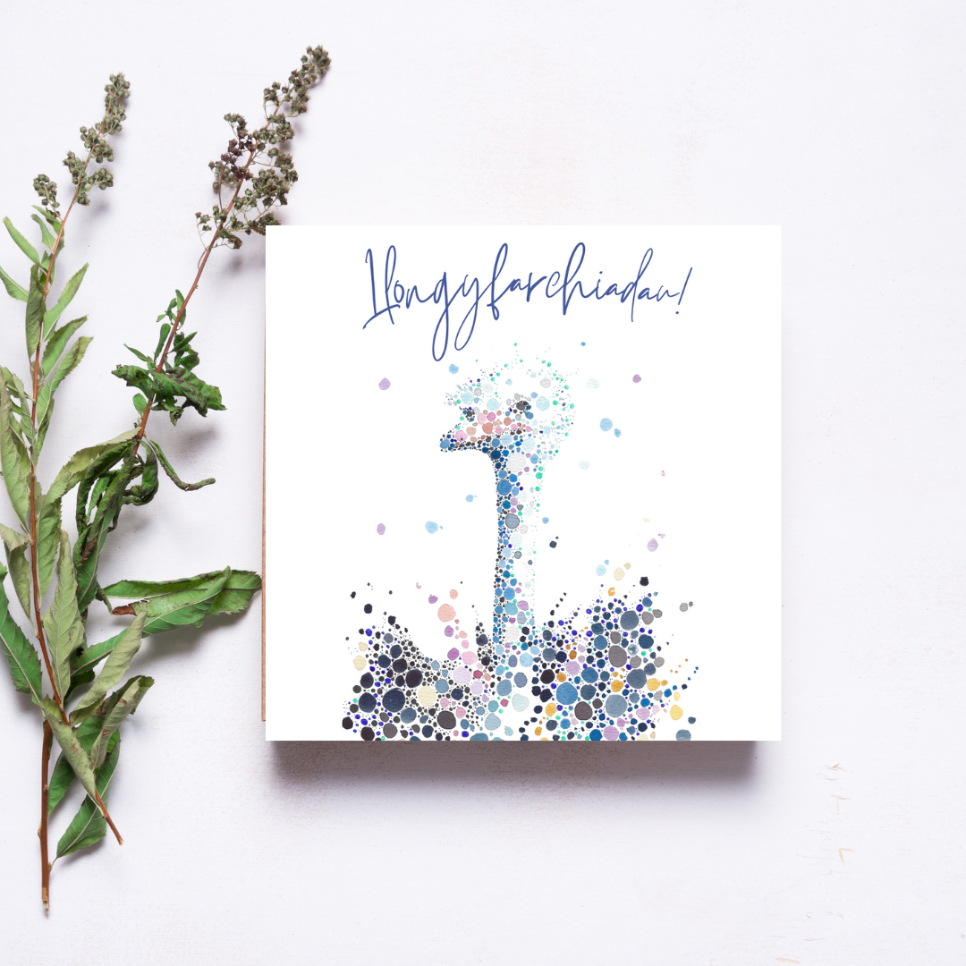 Llongyfarchiadau, Congratulations Ostrich Welsh Card