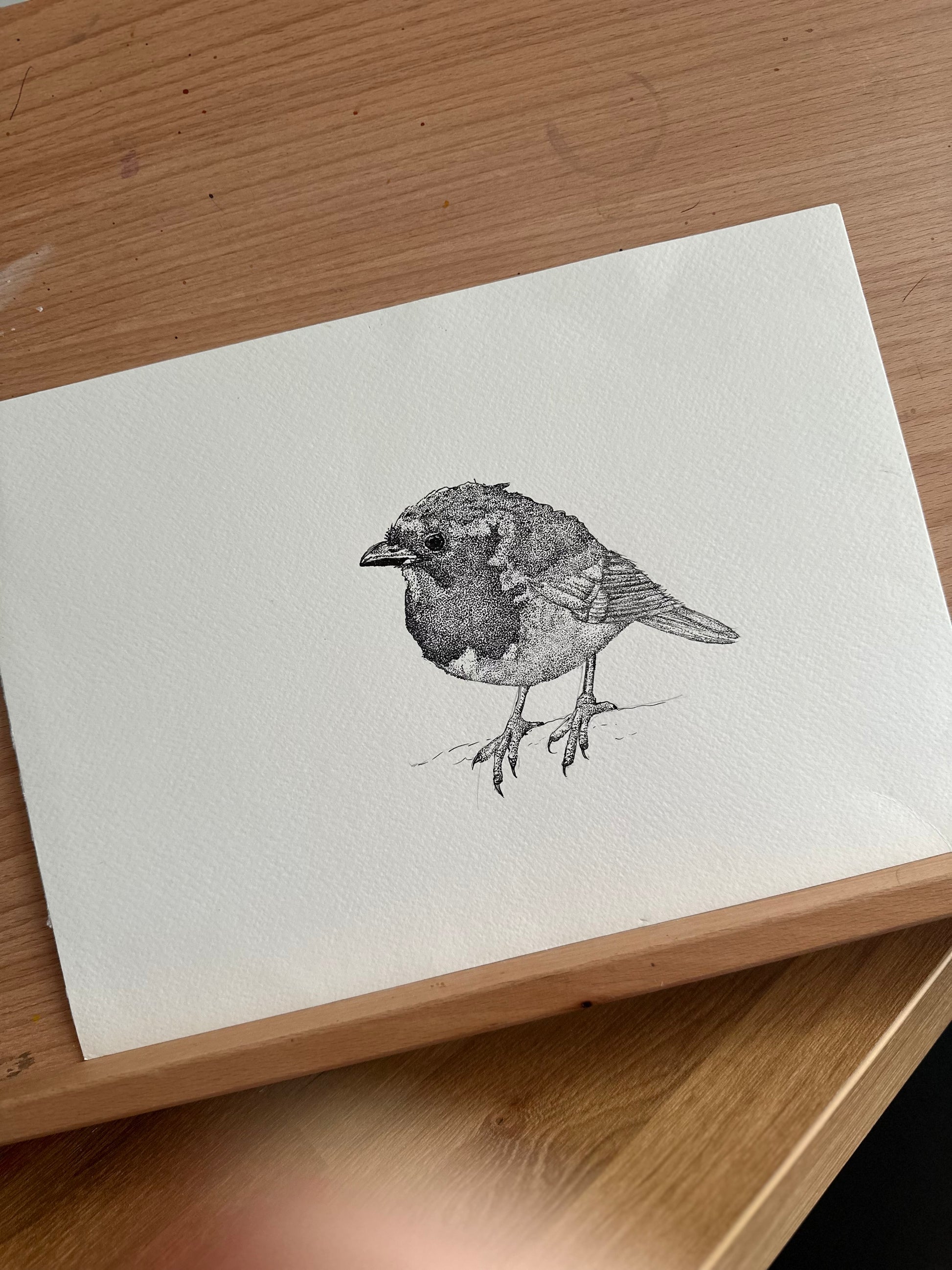 Original Black & White Ink Bird art. This depiction of a small bird is a fantastic image of this beautiful creatures majestic grace.