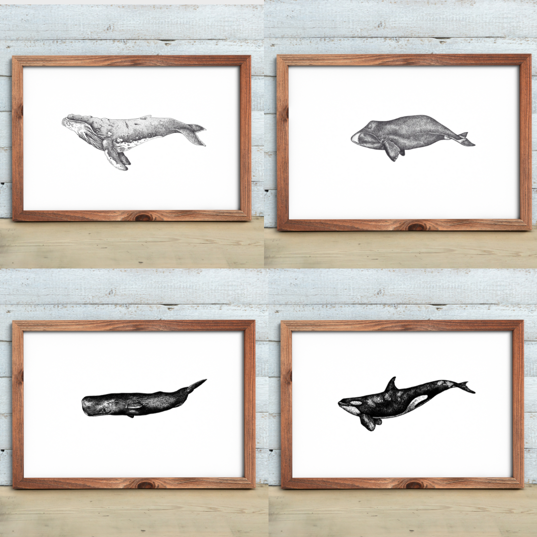 With this Print Set made up of a Humpback, Bowhead, Orca and Sperm Whale you can add a touch of class to your home décor.